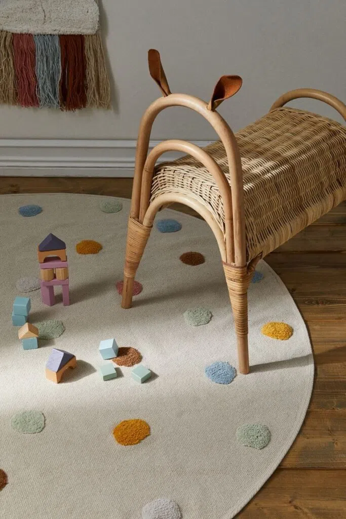 A gyerekszobába olyan szőnyegeket válassz, amelyek könnyen tisztíthatók, biztonságosak és lehetőleg mosógépben moshatók. A pamut vagy szintetikus anyagú szőnyegek ideálisak. A színes, vidám minták pedig remekül feldobnak egy egyszerű kis szobát is.